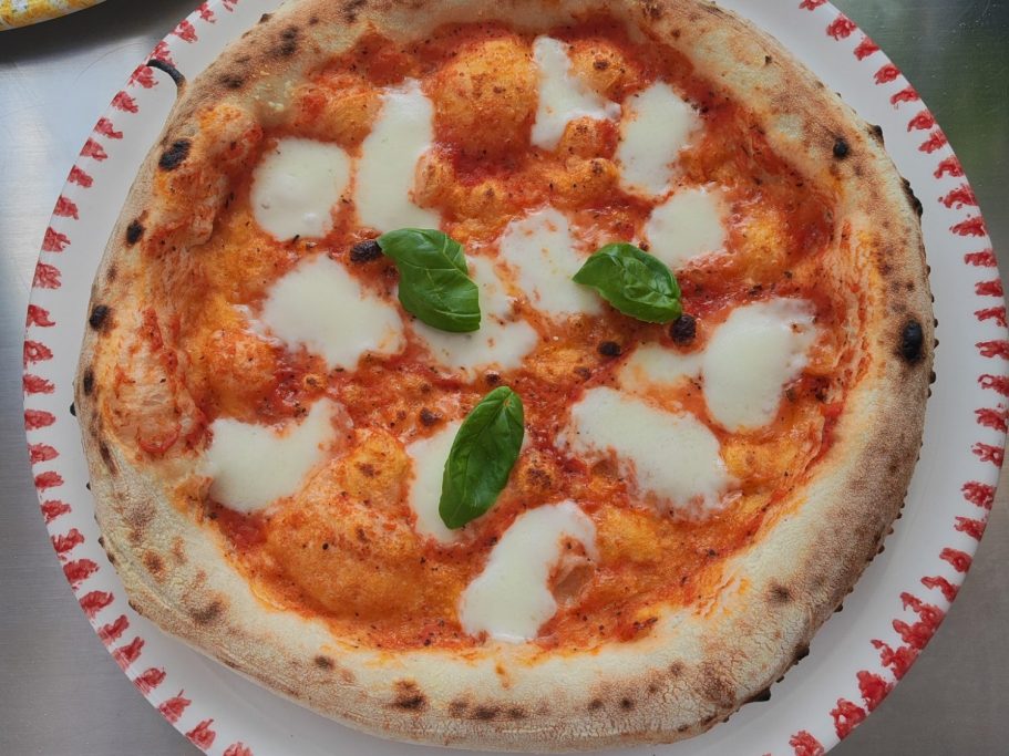 .…mit sehr hochwertigen, frischen Zutaten, einem Teig der 72h ruht und bei 485 Grad für 90 Sekunden gebacken wird.